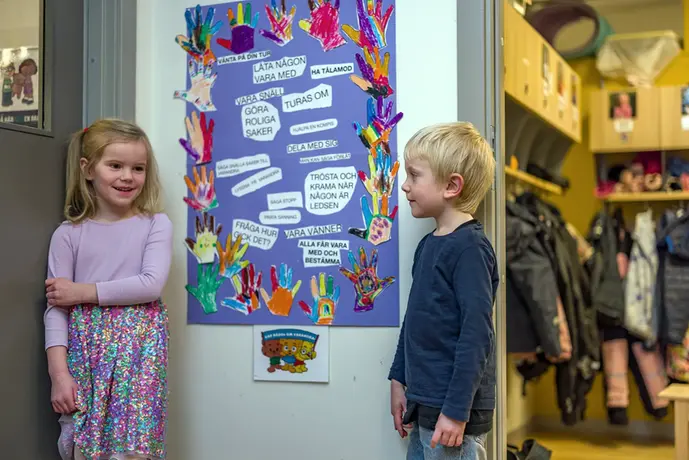 På avdelningen Lejongropen vid Hagaängs förskola i Lidköping är barns rättigheter en naturlig del av vardagen. Här påverkar barnen verksamheten, projekt och aktiviteter. Demokratiska arbetssätt och ett ständigt pågående samtal om barns syn på olika frågor skapar möjligheter för barnen att vara aktiva, kreativa och delaktiga.