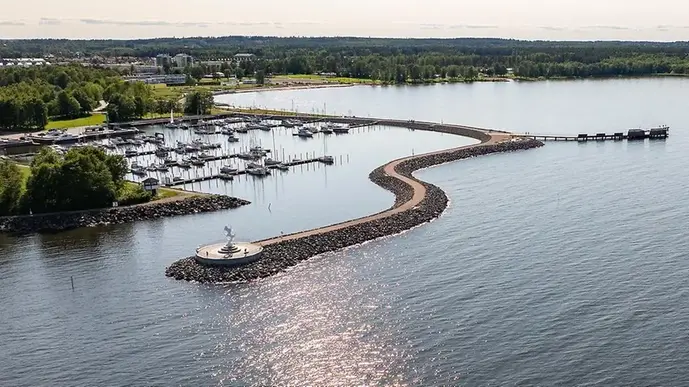 Samspelet mellan sandstrand, baddäck, bryggor och naturlika biotoper skapar rika upplevelser. Det knyter också parken till småbåtshamnen och anslutande rekreationsområden. Konstverket längst ut på piren förstärker upplevelsen av vattnets möte med himlen och gör dess spets till målpunkt.
