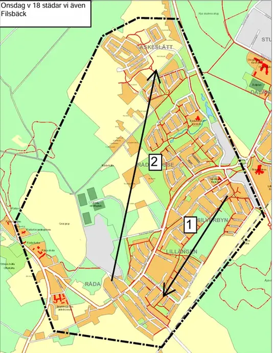 Vår plan för vecka 16 är att städa Ljunghed och Majåker (OMR 1). Om vi hinner färdigt där fortsätter vi sen till (OMR 2) Margretelund.