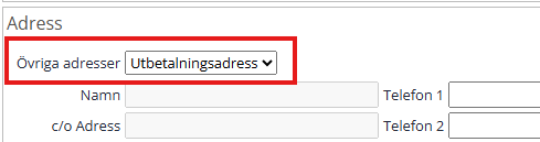 Klicka vidare på bocken utbetalningsadress och välj anhörigadress. Skriv in Namn, Postnummer och Mobilnummer.