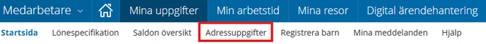 Du kan lägga in uppgifter till närmsta anhörig i Medarbetarportalen. Klicka på rubriken Adressuppgifter.