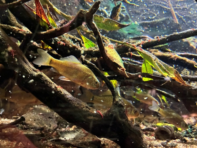 Många arter har som strategi att lägga mängder av ägg. Detta för att öka chansen att åtminstone några yngel/larver överlever till vuxen ålder. Rovdjur, sjukdomar och andra faror är färre i akvarier än i naturen. Tillgången på mat är också större och generellt mer regelbunden. Det gör att överlevnadsgraden för yngel/larver är mycket högre på djurparker än i det vilda. Resultatet är att vi ibland får fler djur än vi har plats för. När det händer, läggs djuren ut som bortskänkes eller bytes till andra sötvattensakvarier/djurparker. Ett samarbete som även ger vårt akvarium möjlighet till påfyllnad av arter från andra akvarier/djurparker. Utbyte av djur sker alltid i enlighet med lagstiftning samt vårt vattenbrukstillstånd.