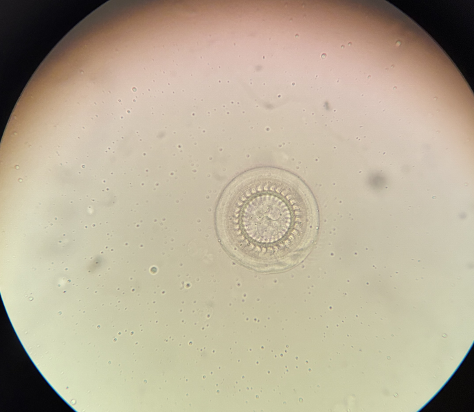 På bilden syns en hudparasit som levde på en fisk, sett under mikroskop.