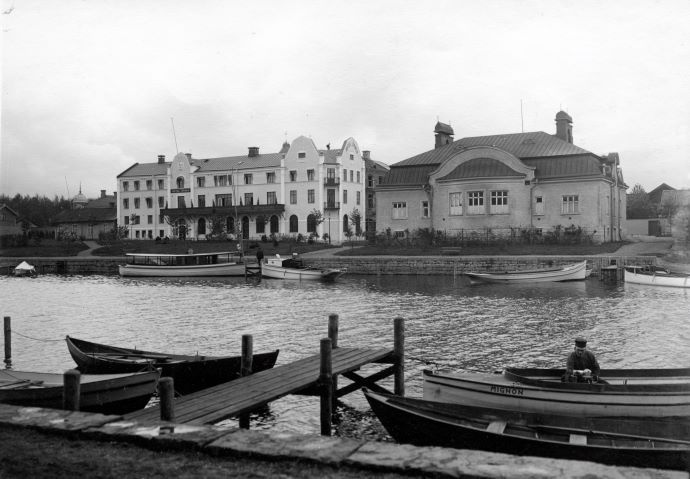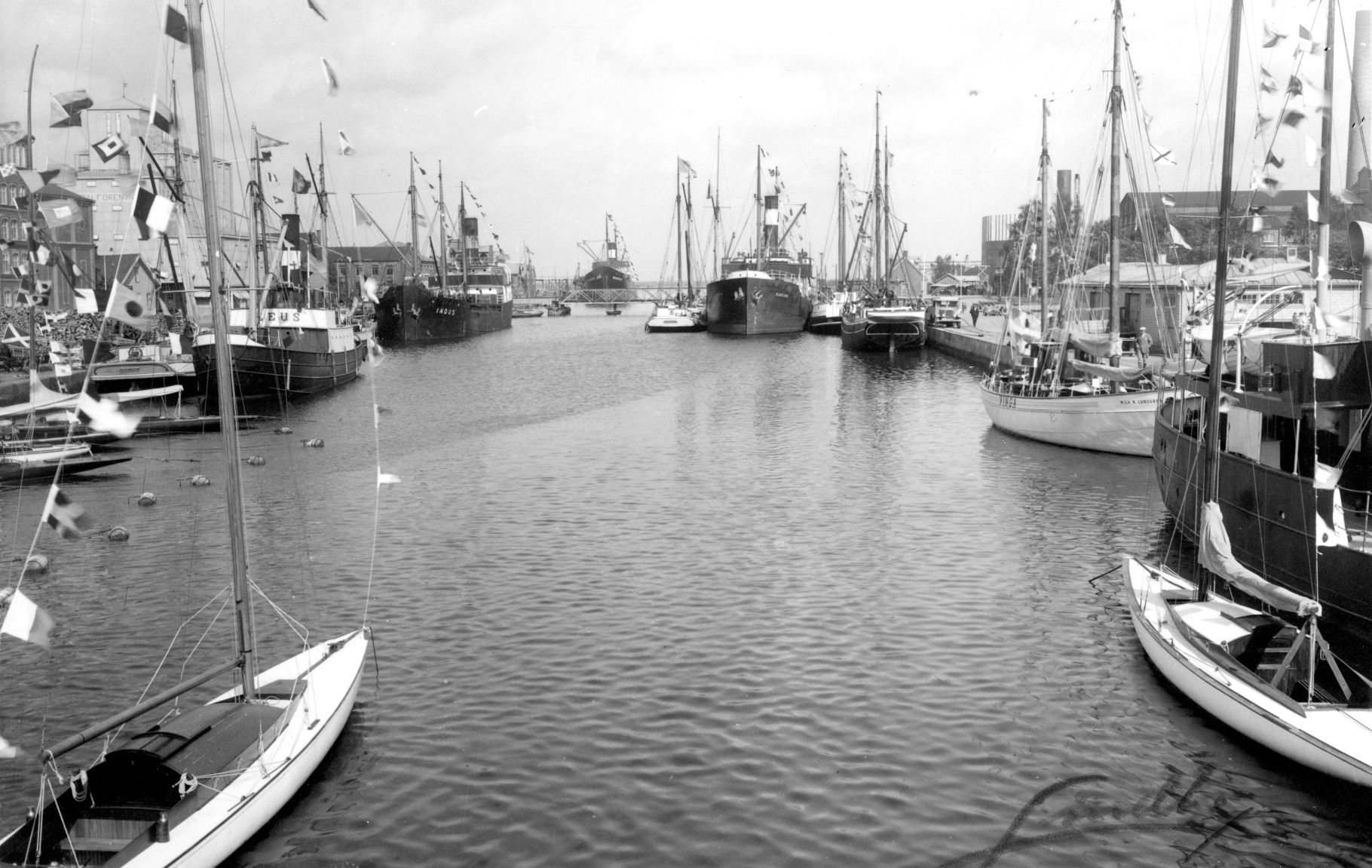 Werner Lindhe decides to take a picture during the maritime exhibition of 1937 in Lidköping. He goes to Torgbron (The square bridge) and captures many boats and ships with his camera. To the far right the steamboat Polstjärnan is at the docks. It belonged to Vänerns seglationsstyrelse (The navigation board of Lake Vänern), which operated and mantained lighthouses and ship piloting in Lake Vänern from late 18th century to early 21st century. Polstjärnan is still going strong thanks to an association that carries the steamer’s name.