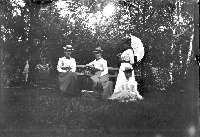 I mitten av bilden (tredje från vänster) syns Mary Anderson, född Molander 1873. Mary drev en handelsbutik i Lidköping under flera år och slog sedan ihop sin verksamhet med Albin Andersson när de gifte sig år 1900. Mary hade många barn och stort hushåll som hon kombinerade med en rik affärsverksamhet i Lidköping. På bilden syns hon i sällskap av väninnorna Anna Wahl, Augusta Wahl, Frida Nilsson och Ida Andersson, sittandes i en park. Mary avled 1956 och har efterlämnat sig många dagböcker som i dag förvaltas av Vänermuseet.