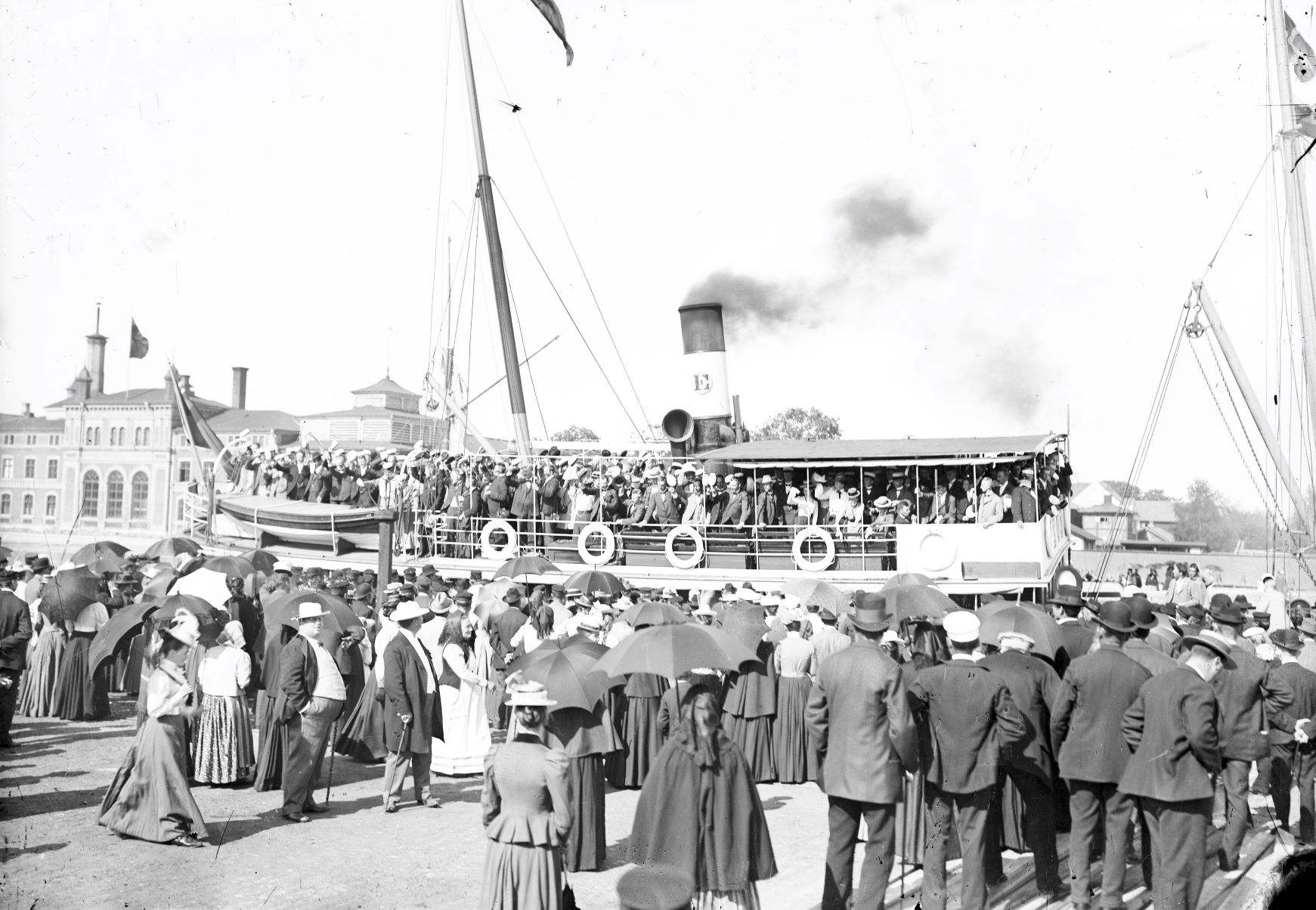 The passenger steamer Eos at the docks of harbour in Lidköping in the early 20th century. Are you able to tell if Eos just arrived or if she is ready to leave? Eos was built in 1902 at Dösebacka shipyard at the Göta älv river. In the collections of the Museum of Lake Vänern you will find both timetables, tariffs, washing receipts and paintings from and of Eos. Unknown photographer.