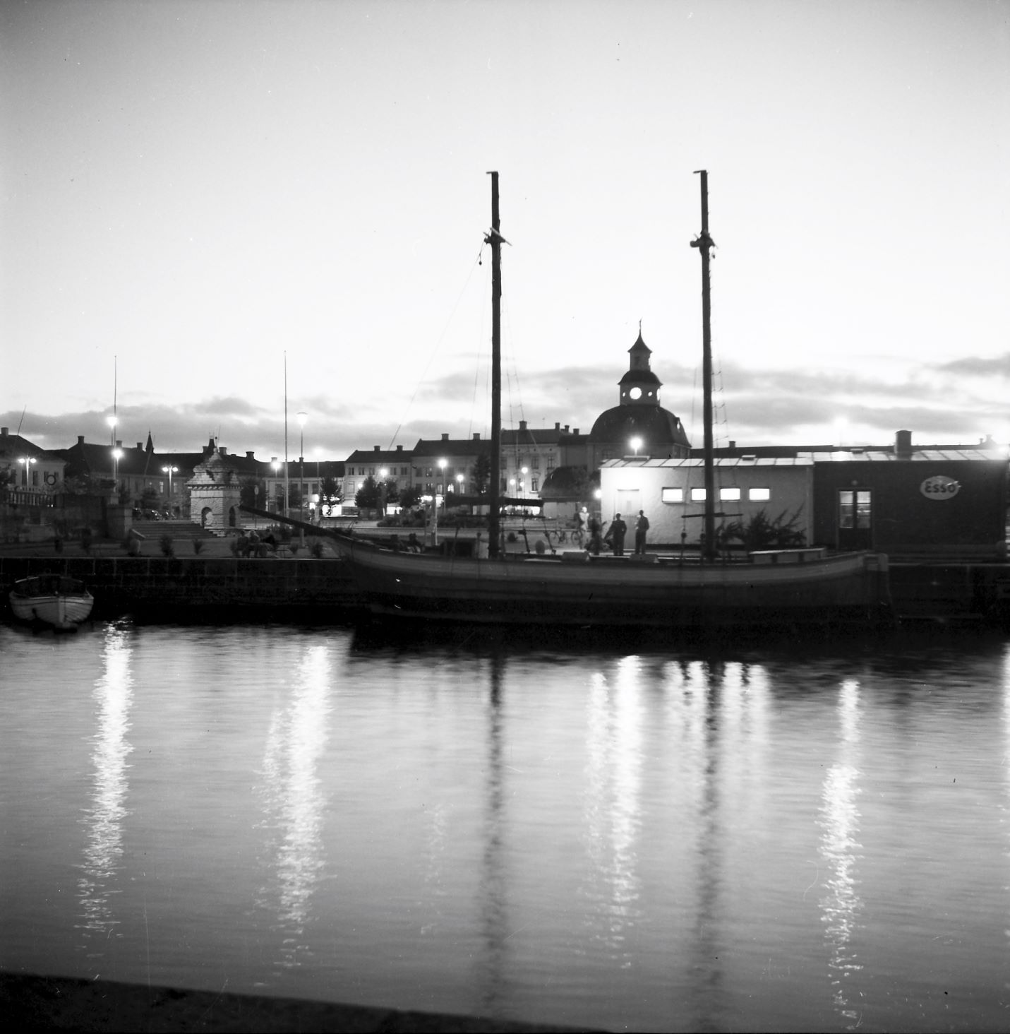 Det är sommarnatt när Gunnar Hoflund ställer sig vid inre hamnen på Gamla stadens torg. Med sin kamera fångar han Nya stadens torg och Gamla rådhuset i Lidköping. Gunnar flyttade till Lidköping 1943, ursprungligen kom han från Motala. Han verkade som fotograf i Lidköping under många år. Gunnar Hoflund visits the harbour during one bright summer night.